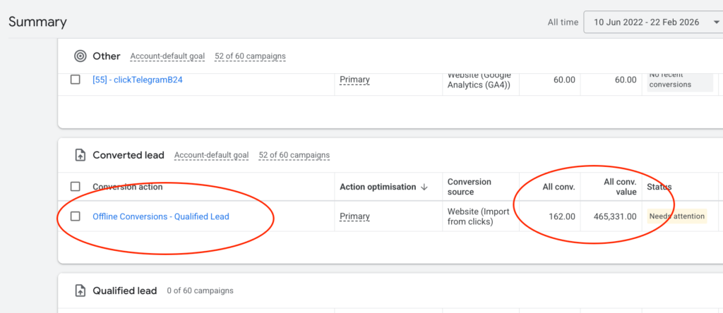 These call values are automatically assigned by Google to the corresponding keywords. Based on this data, we allocate more budget to the keywords generating the highest revenue.